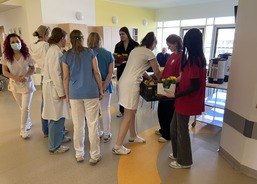 Dobrovolníci roznášeli v nemocnici kytičky k MDŽ