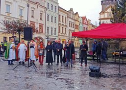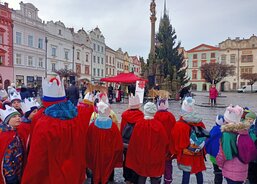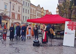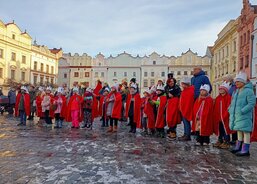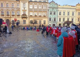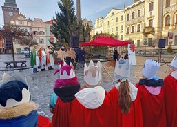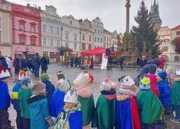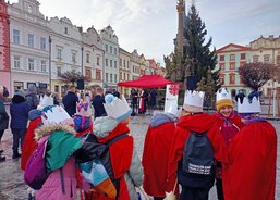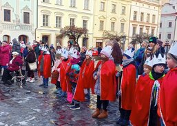Koledníci vyrazili do ulic města i s novou písničkou Tři králové od Michala Horáka, na kterou si hned spontánně zatancovali.