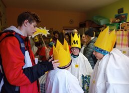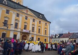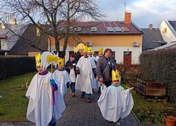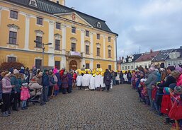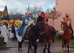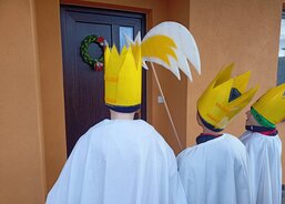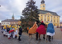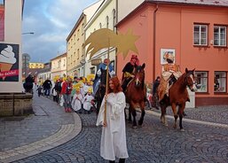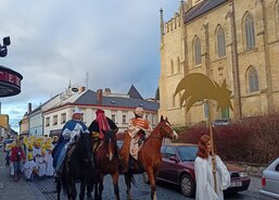 Tři králové na koních vedli průvod koledníků Poličkou k živému betlému na Palackého náměstí v sobotu 7. ledna ráno. Za zvuku fanfár se přišli poklonit malému Ježíškovi v jesličkách a pan farář jim požehnal na cestu před radnicí na zaplněném náměstí. Živý betlém čítal už přes pět desítek živých postav, dvacet dětí a živá zvířátka. Akci pořádají Charita společně s farností a ani covidová pauza organizátory nezaskočila. Letošní koledě přálo i počasí. Se skupinkou spolužáků ze 4. třídy jsme koledovali v nové zástavbě a klukům se podařilo vykouzlit nejeden úsměv na tvářích dětí i dospělých. Taška se jim plnila dobrotami a po poledni se už všichni těšili na charitní guláš, na kterém si moc pochutnali. V charitním stacionáři, odkud ráno vyráželi, je čekalo milé přivítání a za odměnu dostali vstupenku do kina a barevný šátek, který se hodně líbil. U oběda si všichni vyprávěli zážitky z koledování a v dětském koutku bylo taky plno. A tak to má být, Tříkrálová sbírka je dobročinná akce, při které setkávají lidé všech generací.