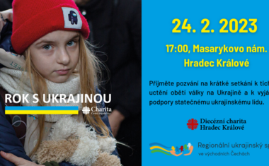 V pátek 24. února od 17 hodin se na Masarykově náměstí v Hradci Králové uskuteční krátké setkání k tichému uctění obětí války na Ukrajině a vyjádření podpory statečnému ukrajinskému lidu a protestu proti této válce. Akci pořádá Diecézní charita Hradec Králové ve spolupráci s Regionálním ukrajinským spolkem ve východních Čechách u příležitosti ročního výročí od ruské invaze na Ukrajinu. Charita působí od samého počátku v Krajském asistenčním centru pomoci Ukrajině v Královéhradeckém kraji, kterým prošlo za uplynulý rok více než 20 tisíc uprchlíků. Tisícům z nich Charita pomohla poměrně rychle se adaptovat a zapojit do života.